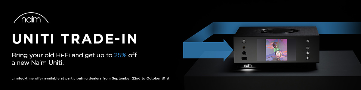 Customers who bring in their existing Hi-Fi unit of any brand and trade it in at a participating Naim dealer will receive a discount of up to 25% on the purchase of a new Naim Uniti – Atom, Star, Nova, Nova PE or Atom HE.