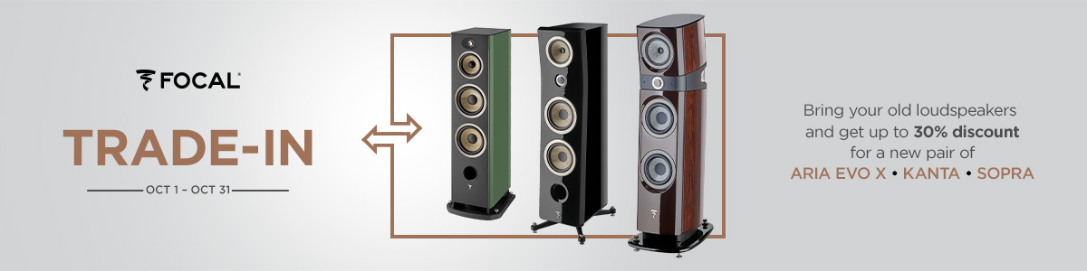 Customers who trade in their used speakers at a participating Focal retailer will receive an instant discount of up to 30% on a new pair of Aria X, Kanta, or Sopra series speakers. The retailer will determine the discount based on the assessed value of the traded-in speakers. The market value of the traded-in speakers may not exceed 30% of the original price of the Focal speakers.